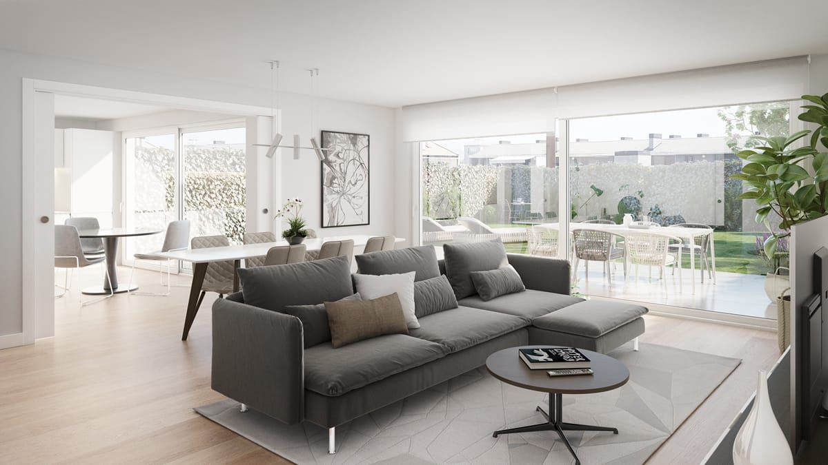 La arquitectura de tu nuevo chalet está cuidada al detalle para conjugar la máxima funcionalidad con el más exquisito diseño. Con una imagen de líneas contundentes y limpias. El interior y exterior establecen un ‘diálogo’ en el que cobra un gran protagonismo la luz natural y la integración de las zonas verdes en las estancias principales.
